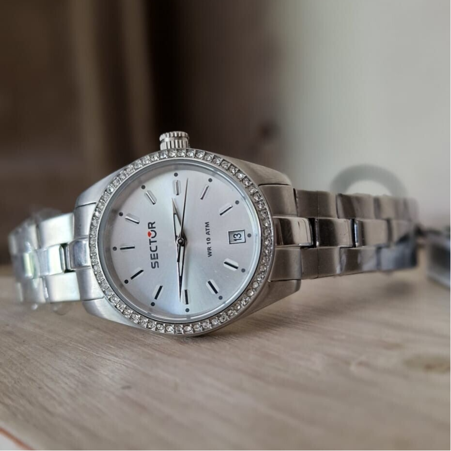 Sector Woman32 mmQuartz10 ATMStaalMineraal glasBezel bezet met steentjesComplete nieuwe setAdviesprijs 139 euroOnze prijs 89 euro
