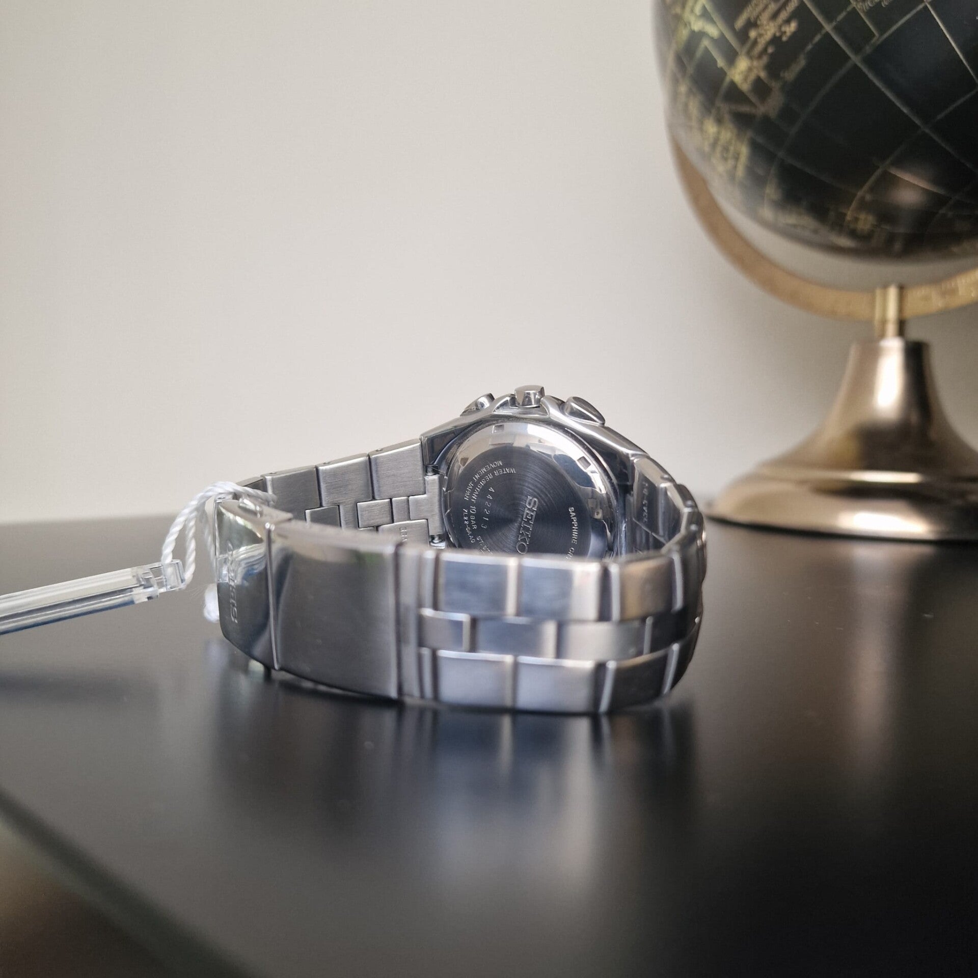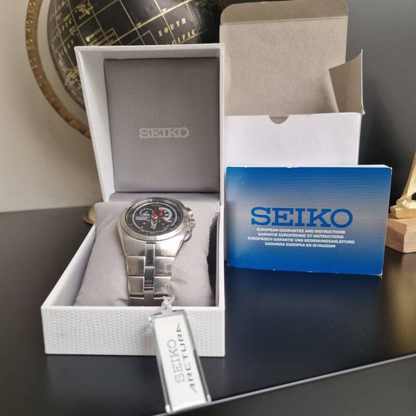 Seiko Arcutra Chronograph42 mmSeiko japan 7L22 movementChronograafStaalKalenderLumeMet doos en boekjeNette staatClip heeft een klein deukje